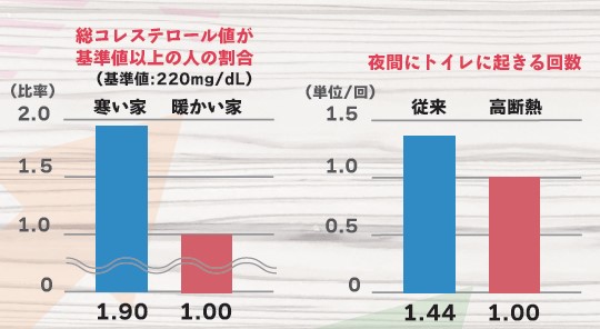 さらに、断熱性の高い「暖かい家に住む人は夜間トイレに起きる頻度が寒い家より3割ほど少なく」、