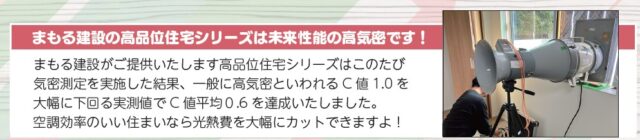 高品位シリーズでは、気密測定C値0.6という結果が出ました。