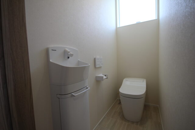 トイレ内は、クロスと床をナチュラルカラーで統一。